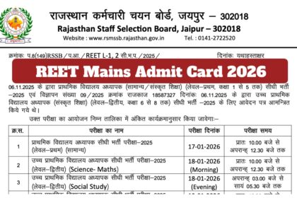 REET मेन्स एडमिट कार्ड 2026 – 12 जनवरी को rssb.rajasthan.gov.in पर डाउनलोड करने के लिए सीधा लिंक उपलब्ध है।