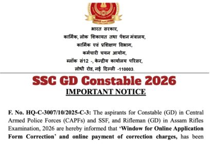 एसएससी जीडी कांस्टेबल 2026: उम्मीदवारों के लिए खुशखबरी! एसएससी जीडी कांस्टेबल 2026…