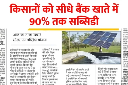 Solar Pump Subsidy Scheme :किसानों को सीधे बैंक खाते में 90% तक सब्सिडी, जानें पूरी प्रक्रिया