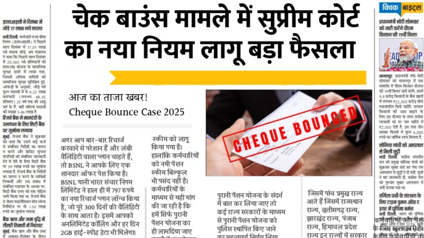 Cheque Bounce Case 2025: भारतीय अर्थव्यवस्था में आज भी लाखों लोग विभिन्न आर्थिक लेनदेन के लिए चेक का प्रयोग करते हैं। चेक एक ऐसा माध्यम है जिसके द्वारा किसी व्यक्ति को बड़ी राशि सुरक्षित तरीके से भुगतान की जा सकती है। बैंक खाते से सीधे पैसे निकालकर दूसरे व्यक्ति को देने की बजाय चेक लिखकर देना एक सुविधाजनक और विश्वसनीय तरीका माना जाता है। व्यापारी, उद्योगपति, कर्मचारी और अन्य लोग चेक का उपयोग महत्वपूर्ण भुगतान के लिए करते हैं।