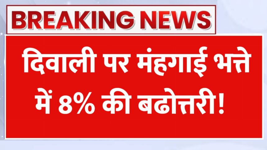 DA Hike Breaking News :मंहगाई भत्ते में 8% की बढोत्तरी दिवाली की खुशियाँ डबल
