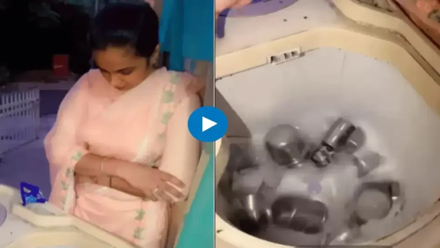 हाल ही में सोशल मीडिया पर एक वीडियो जमकर वायरल हो रही है. इस वीडियो में महिला ने बर्तन धोने के लिए एक देसी जुगाड़ लगाया है. सभी लोग मशीन में कपड़े धोते है और हाथ से बर्तन धोते है, लेकिन इस महिला ने कपड़े धोने वाली मशीन में बर्तन धो दिए.
