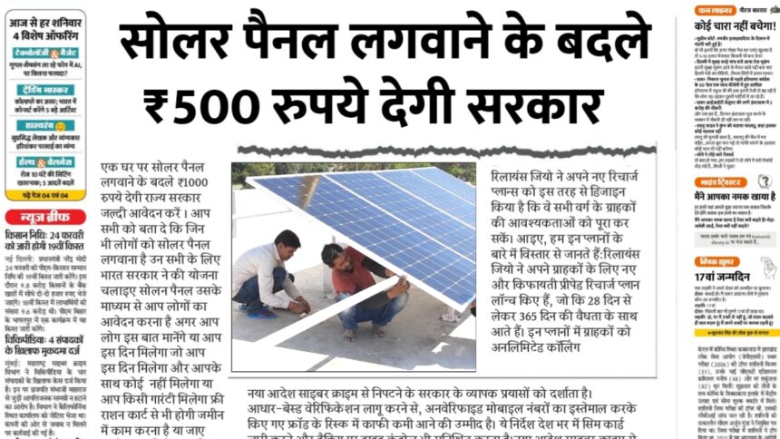 Free Solar Panel Yojana :हर घर पर सोलर पैनल लगवाने के बदले ₹500 रुपये देगी राज्य सरकार जल्दी आवेदन करें