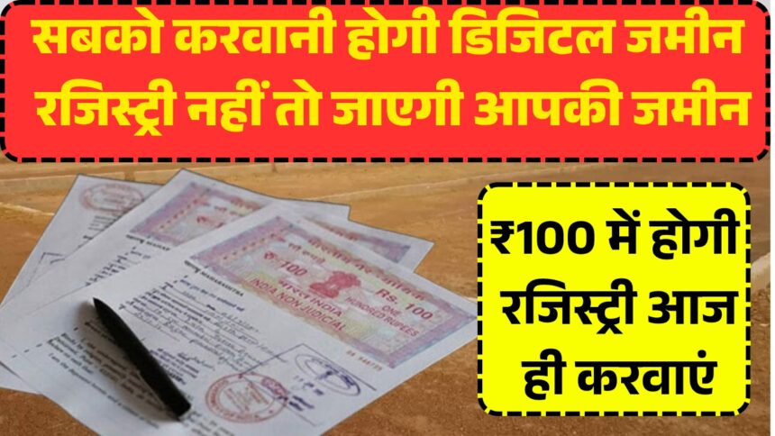 सरकार ने यह नया फरमान निकला है कि जो भी लोग जो जमीन के मालिक हैं उनके पास अगर पुराने डॉक्यूमेंट के साथ जमीन की रजिस्ट्री है तो उनको आप डिजिटल रजिस्ट्री करवानी होगी इसके लिए आपको यह रजिस्ट्री ऑनलाइन करवानी होगी लेकिन बताया जा रहा है कि कुछ लोग इसके रजिस्ट्री करवाने के लिए आम जनता से भारी मात्रा में फीस वसूल रहे हैं लेकिन सरकार ने कहा है कि यह सिर्फ ₹100 के अंतर्गत ही आती है ₹100 में आप इसकी रजिस्ट्री करवा सकते हैं ।