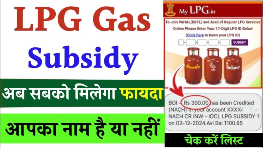 एलपीजी गैस सब्सिडी वह आर्थिक सहायता है जो सरकार उपभोक्ताओं को रसोई गैस की कीमतों में कमी लाने के लिए देती है। इसके अंतर्गत उपभोक्ता पहले गैस सिलेंडर का पूरा बाजार मूल्य भरते हैं और उसके बाद सरकार उस पर दी जाने वाली सब्सिडी राशि सीधे उनके बैंक खाते में भेजती है। यह राशि डायरेक्ट बेनिफिट ट्रांसफर (DBT) प्रणाली के माध्यम से जुड़ी होती है, जिससे बीच के बिचौलियों की भूमिका समाप्त हो जाती है और पारदर्शिता बढ़ती है।