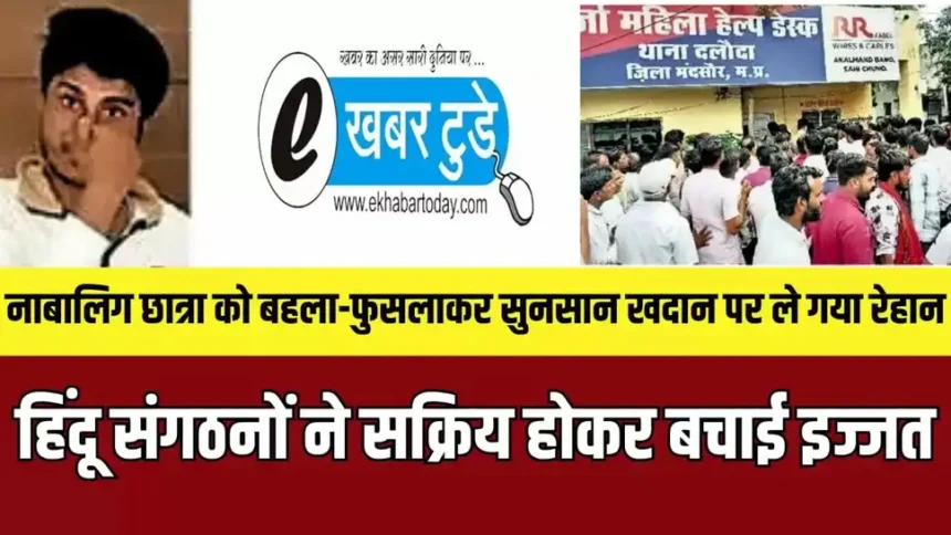 Mandsaur News: मंदसौर जिले से क्राइम का एक बड़ा मामला सामने आया है। जिले के नयापुरा निवासी 19 वर्षीय युवक रेहान मेव ने इंस्टाग्राम के जरिए नाबालिग छात्रा से दोस्ती कर ली। 8 माह की दोस्ती के बाद मंगलवार को युवक स्कूल की छुट्टी के बाद छात्रा पर दबाव बनाकर यूनिफॉर्म में ही बाइक से सुनसान खदान की ओर ले गया। वहां संदेह होने पर लोगों ने उन्हें पकड़ लिया और थाने ले गए। मौके पर हिंदू संगठनों के कार्यकर्ता पहुंचे और जमकर हंगामा किया। मामले में पुलिस ने आरोपी के खिलाफ केस दर्ज कर जांच शुरू की है।