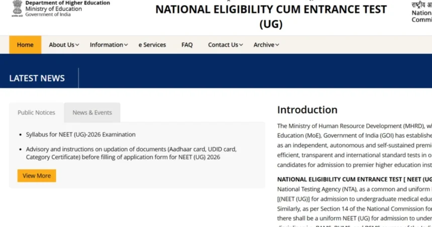 NEET की आधिकारिक वेबसाइट पोर्टल – NEET 2026 फॉर्म भरने और एडमिट कार्ड डाउनलोड करने के चरण