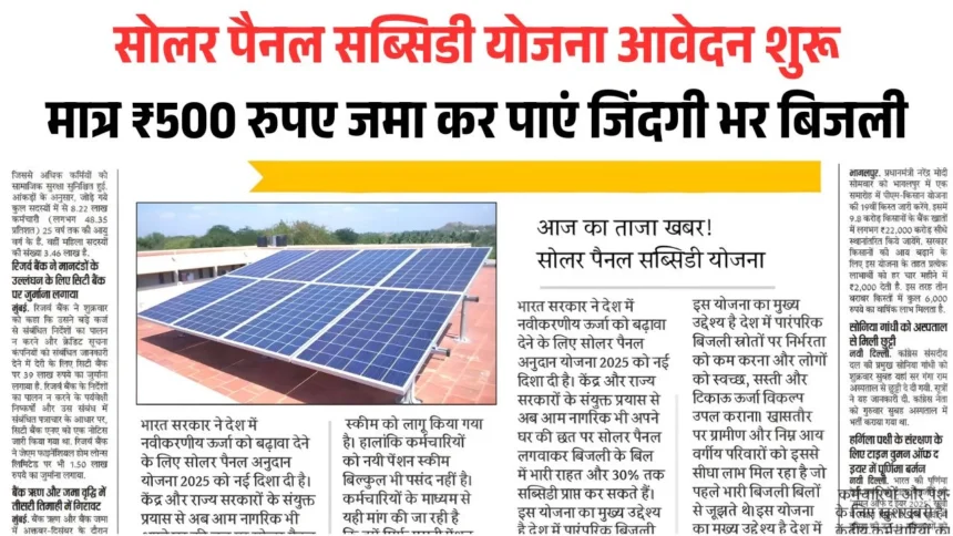 Solar Panel Yojana :सोलर पैनल सब्सिडी योजना के आवेदन शुरू, मात्र ₹500 रुपए जमा कर पाएं जिंदगी भर बिजली बिल से छुटकारा