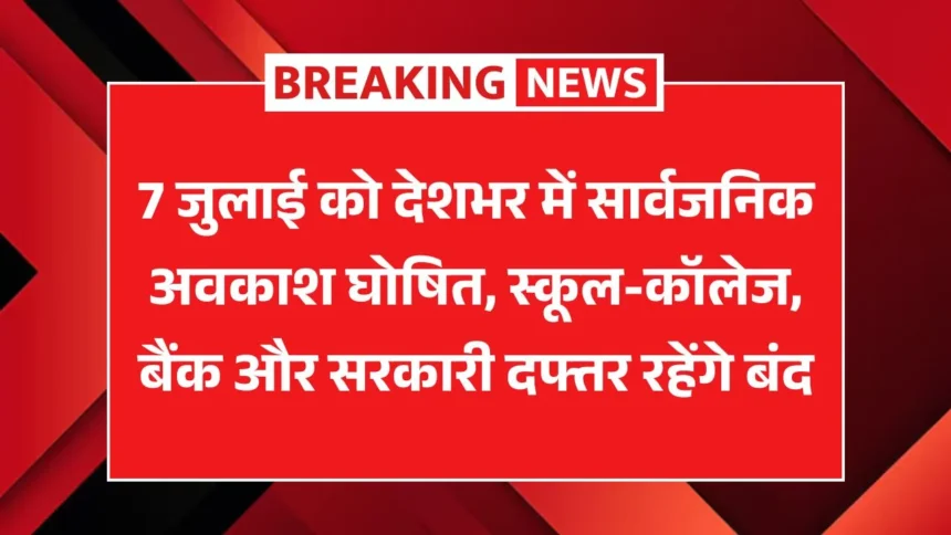 Public Holiday :7 जुलाई को देशभर में सार्वजनिक अवकाश घोषित, स्कूल-कॉलेज, बैंक और सरकारी दफ्तर रहेंगे बंद