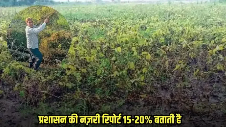 प्रशासन की नज़री रिपोर्ट 15-20% बताती है, किसान कहते हैं 70-100% फसल बर्बाद