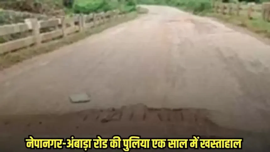 नेपानगर-अंबाड़ा रोड की पुलिया एक साल में खस्ताहाल, सरिए और गड्ढे खतरनाक
