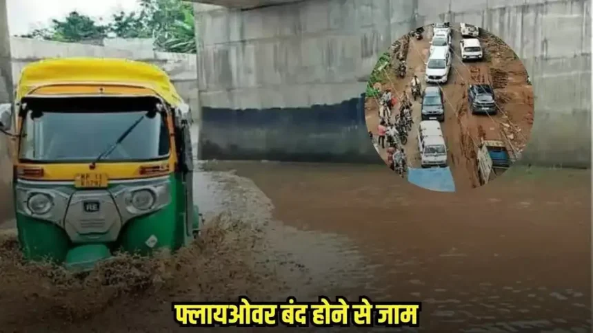 फ्लायओवर बंद होने से जाम, बारिश में ट्रैफिक डायवर्ट करना पड़ा, शाम को रास्ता खुला