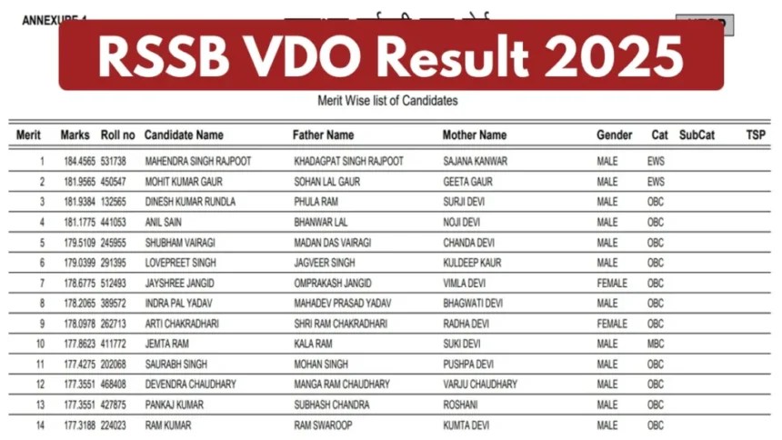 आरएसएसबी वीडीओ परिणाम 2025 – राजस्थान ग्राम विकास अधिकारी मेरिट सूची पीडीएफ rssb.rajasthan.gov.in पर डाउनलोड करें