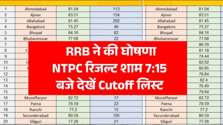 RRB NTPC Result :RRB ने की घोषणा NTPC रिजल्ट शाम 7:15 बजे देखें Cutoff लिस्ट