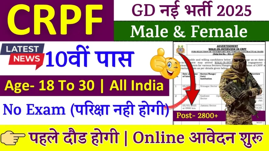 CRPF Jobs 2025: 18 से 25 साल युवाओं के लिए सुनहरा मौका, इतनी होगी सैलरी और सुविधाएं