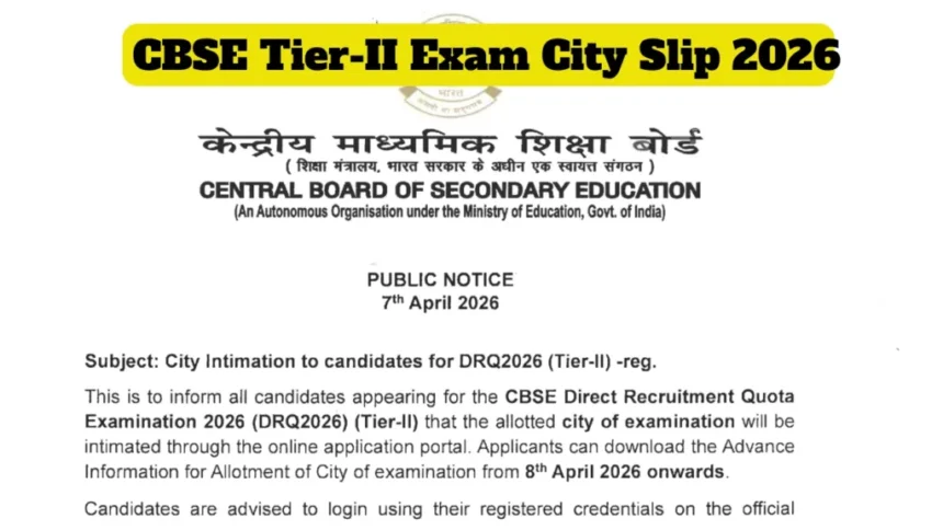 सीबीएसई टियर-II परीक्षा 2026 की सिटी स्लिप का लाइव अपडेट – 8 अप्रैल को cbse.gov.in से सूचना स्लिप डाउनलोड करें