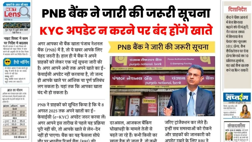 PNB Bank Latest News: आज के समय में हर छोटी-बड़ी लेन-देन बैंक खाते से जुड़ी होती है। ऐसे में अगर खाते पर कोई प्रतिबंध लग जाए तो ग्राहकों को बड़ी परेशानी का सामना करना पड़ सकता है। पंजाब नेशनल बैंक (PNB) ने हाल ही में एक अहम घोषणा की है। बैंक ने साफ कहा है कि जो भी ग्राहक तय समय पर KYC अपडेट नहीं करेंगे, उनके खातों से लेन-देन पूरी तरह से रोक दिया जाएगा। यह नियम सभी प्रकार के खातों पर लागू होगा और इसकी अंतिम तिथि 30 सितंबर 2025 तय की गई है।