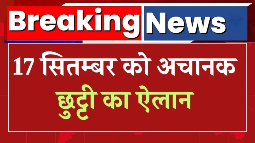 Public Holiday: 17 सितम्बर को अचानक छुट्टी का ऐलान, स्कूल-कॉलेज, बैंक व दफ्तर बंद