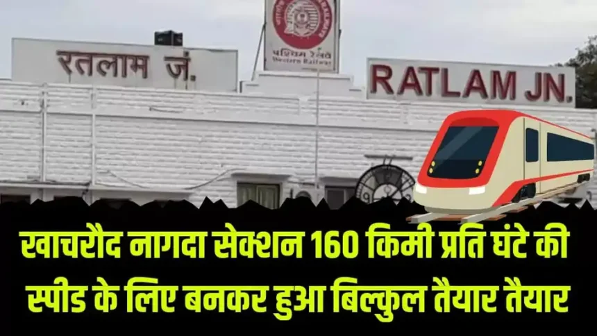 Ratlam Railway Mandal: रतलाम रेलवे मंडल द्वारा खाचरौद नागदा सेक्शन 160 किमी प्रति घंटे की स्पीड के लिए बनाकर बिल्कुल तैयार कर दिया गया है। यह ट्रैक अब ट्रेनों की हाई स्पीड के लिए बिल्कुल रेडी है। मिशन रफ्तार में रतलाम मंडल ने भारतीय रेल में पहली बार मौजूदा ओवरहेड इक्विपमेंट (ओएचई) प्रणाली को अपग्रेड कर 2 गुणा 25 केवी प्रणाली में परिवर्तित कर लिया है। सबसे पहले यह अफोडेशन मंडल के खाचरौद नागदा डबल लाइन रेल खंड में हुआ है। इसके बाद इस सेक्शन में ट्रेनों को 130 की बजाए 160 किमी प्रति घंटे की रफ्तार पर चलाया जा सकेगा। परियोजना में नागदा में ट्रैक्शन सब स्टेशन बनाया गया है। यहां एरियल अर्थ कंडक्टर फीडर वायर भी लगाए गए हैं।
