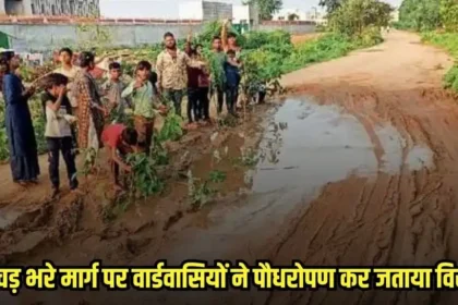 कीचड़ भरे मार्ग पर वार्डवासियों ने पौधरोपण कर जताया विरोध