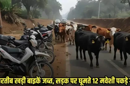 बेतरतीब खड़ी बाइकें जब्त, सड़क पर घूमते 12 मवेशी पकड़े गए