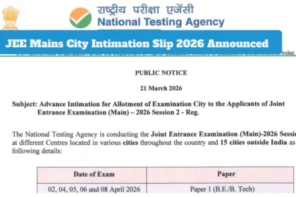 JEE Mains 2026 के लिए परीक्षा शहर सूचना पर्ची जारी: राष्ट्रीय परीक्षण…