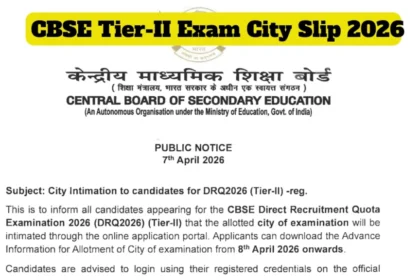 सीबीएसई टियर-II परीक्षा शहर पर्ची 2026: केंद्रीय माध्यमिक शिक्षा बोर्ड (सीबीएसई) ने…