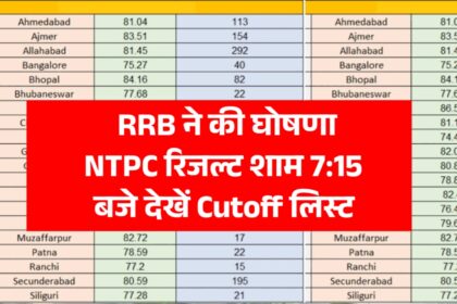 RRB NTPC Result :RRB ने की घोषणा NTPC रिजल्ट शाम 7:15 बजे देखें Cutoff लिस्ट