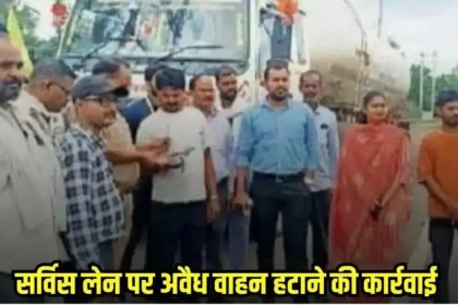 सर्विस लेन पर अवैध वाहन हटाने की कार्रवाई, ट्रक और टैंकरों को हटाया गया
