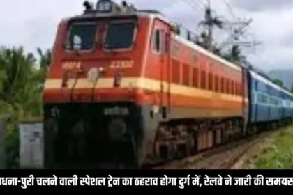 Train Stagnation : पुरी-उधना-पुरी चलने वाली स्पेशल ट्रेन का ठहराव होगा दुर्ग में, रेलवे ने जारी की समयसारणी