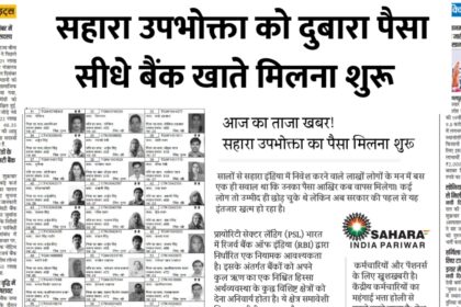 Sahara India Refund Start :सहारा उपभोक्ता को दुबारा पैसा सीधे बैंक खाते मिलना शुरू