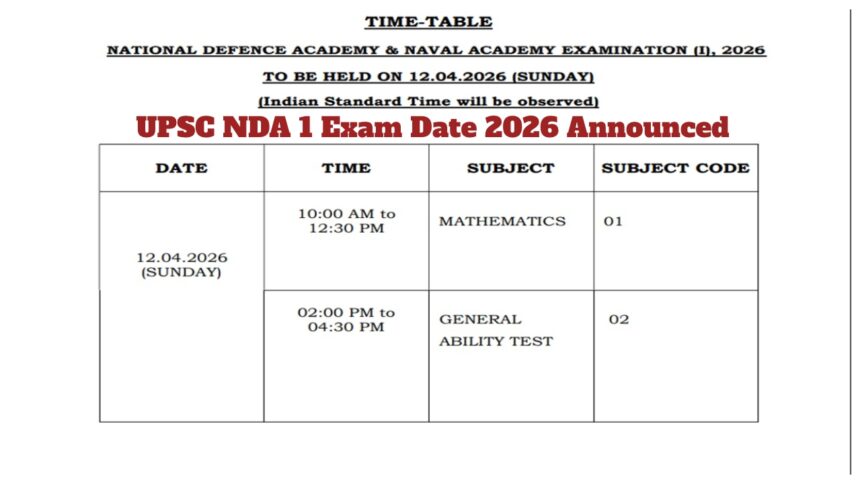 UPSC NDA 1 2026 परीक्षा – 12 अप्रैल को होने वाली परीक्षा की तिथि और समय सारिणी घोषित; 394 रिक्तियों का विवरण देखें