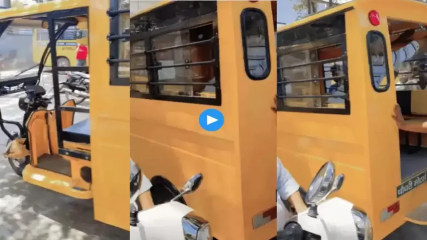 इस वीडियो में आप देख सकते है कि ई-रिक्शा के नया वर्जन आ गया है. ये ई-रिक्शा स्कूल बस की तरह नजर आ रही है. इसमें पीछे की तरफ बहुत से लोग बैठ सकते है. आगे से वैसा ही है जैसे एक नॉर्मल ई-रिक्शा होती है.