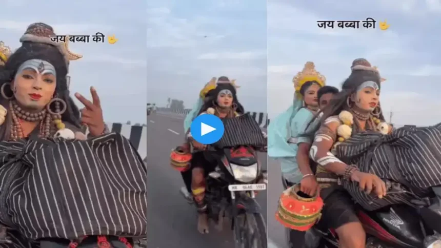 इस वीडियो में आप देख सकते है कि एक शख्स भगवान शिव की वेश धारण करके बाइक चला रहा है. बाइक पर सवार परिवार हरियाणा से है. इस परिवार ने बाइक पर गंगाजल लाने का सोचा है.